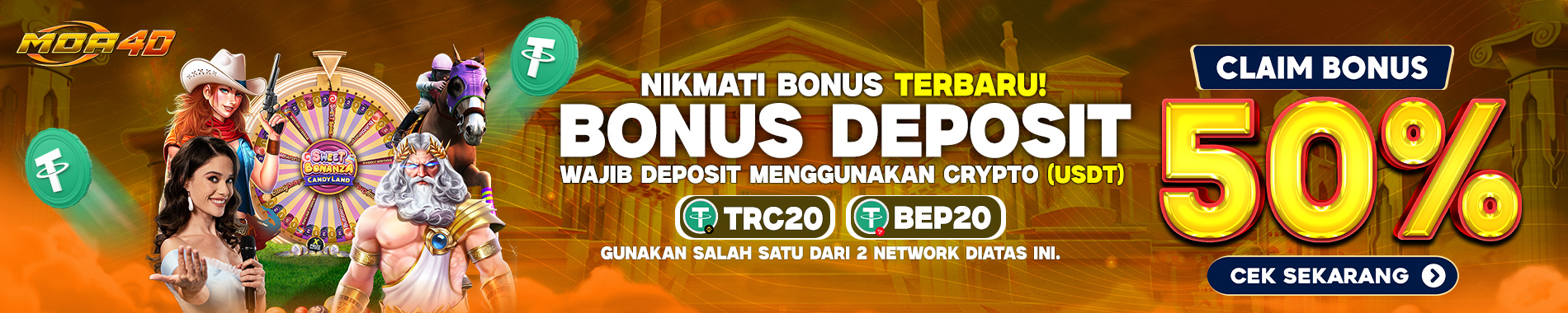 1. WAJIB DEPOSIT MENGGUNAKAN CRYPTO (USDT)2. BONUS DEPOSIT 50% (MAX BONUS 50.000)